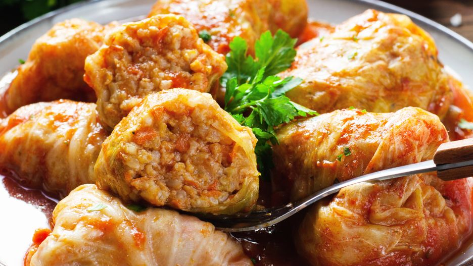 Gołąbkowe roladki z sosem pomidorowym. Do ryżu i mięsa dodaj konkretne warzywo