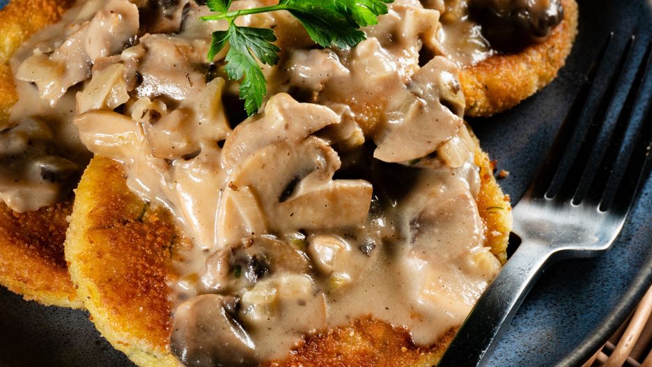 - Gotowe kotlety podawaj na ciepło, najlepiej z sosem pieczarkowym.