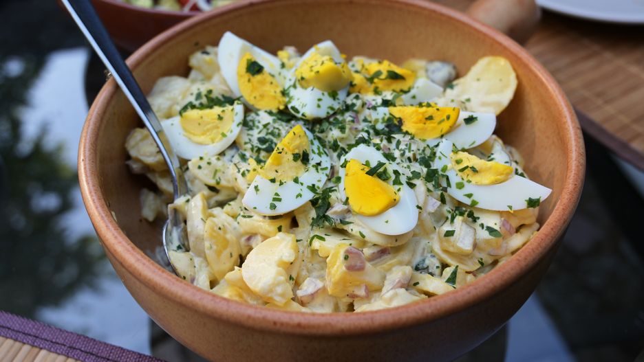 Sałatka z ugotowanych jajek nie tylko rewelacyjnie smakuje, ale także bardzo estetycznie wygląda. Nadaje spotkaniom przyjemnego charakteru, a składniki – jajka, ogórki i rzodkiewki – to wiosenny klimat utrzymany nawet w chłodne, jesienne dni. A to kolejna zaleta tej smacznej pozycji: sprawdza się naprawdę o każdej porze roku. Jak więc ją przygotować? Cóż, ugotowane jajka i ziemniaki to już właściwie pół pracy za nami. Wszystkie pozostałe etapy opisuję w przepisie poniżej.