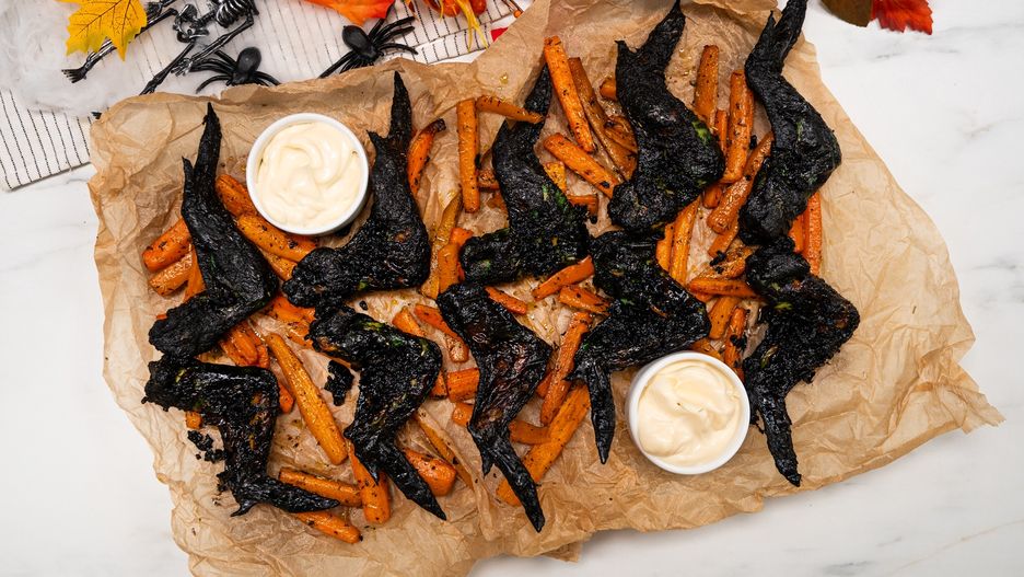 Pomimo efektownego wyglądu, skrzydełka są łatwe do przygotowania. Idealnie wpiszą się w klimat imprezy Halloweenowej, a goście na długo zapamiętają taką przystawkę w stylu hrabiego Draculi lub w wersji dla młodszych w sylu Batmana.
