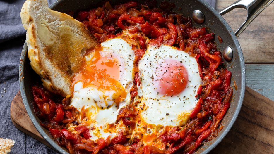 Nie ma nic lepszego na deszczowy poranek niż sycące i aromatyczne śniadanie, które rozgrzewa od środka. Jajka na papryce, pomidorach i pikantnej włoskiej kiełbasy to właśnie taki hit. Jeśli nie zachęci cię słodycz pomidorów i kremowość żółtka, to właśnie pikantna nduja będzie najważniejszą zaletą. Dokładny przepis znajdziesz poniżej.