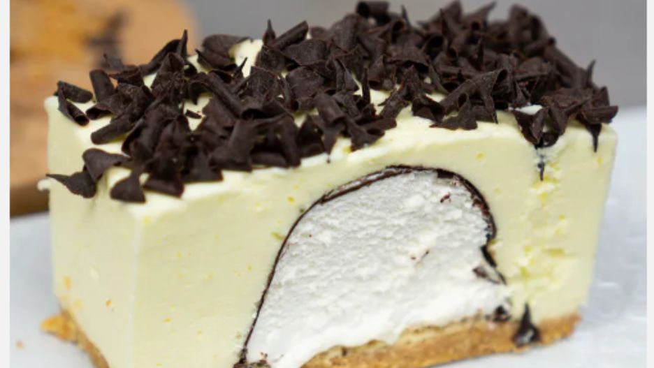 - Na ciasteczkowym spodzie ułóż ciepłe lody. Zalej całość przygotowaną masą.