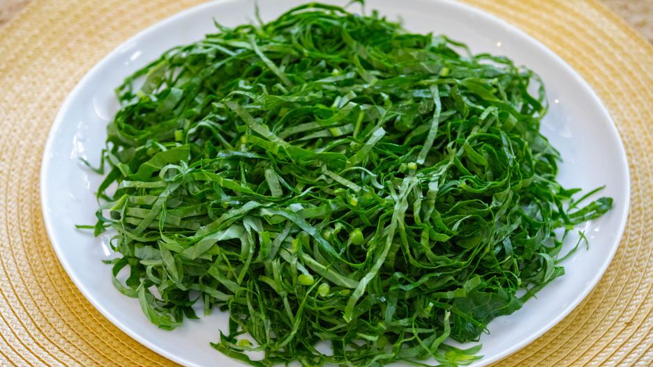 Surowy jarmuż wymaga mechanicznego rozbicia włókien celulozy. Po poszatkowaniu należy go wygnieść z oliwą i solą – liście staną się ciemne, miękkie i słodkawe.