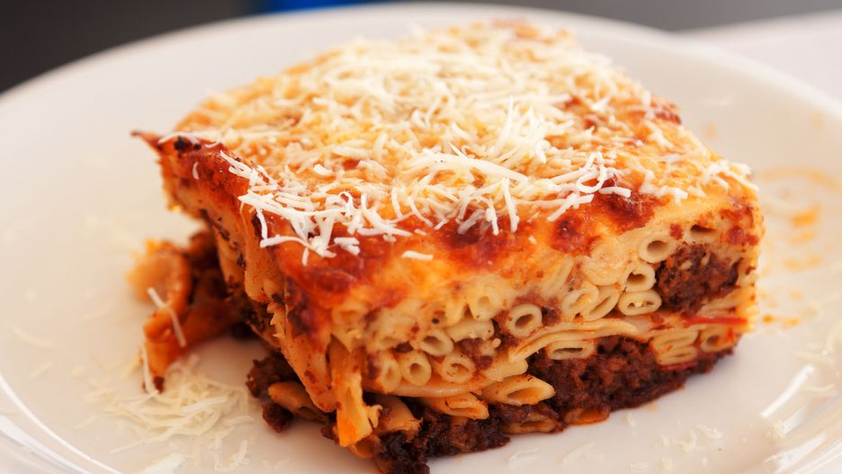 Można go nazwać grecką interpretacją lasagne – mamy tu makaron, beszamel i sos mięsny, a całość trafia do piekarnika, czyli wszystko to, co znajdziesz w klasyku kuchni włoskiej. A jednak pojawia się kilka zaskoczeń.