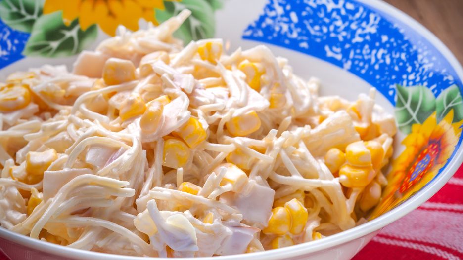 Sałatek zdecydowanie nigdy nie brakowało na uroczystym stole, a wśród nich zawsze pojawiała się również sałatka z szynką, kukurydzą oraz ananasem, która dzięki swojemu wyrazistemu, słodkiemu dodatkowi wyróżniała się spośród pozostałych. Przełamujący wytrawne smaki ananas sprawia, że sałatka jest znacznie ciekawsza w smaku i zapada w pamięć. Do jej przygotowania wystarczą jedynie cztery składniki, dodatkowo dziś wyjątkowo łatwo dostępne.