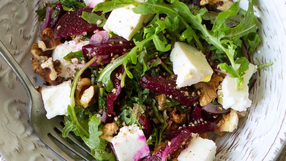 Ta sałatka wygląda tak, że spokojnie mogłaby robić za ozdobę stołu, a jednocześnie jest banalna w przygotowaniu. Buraki nadają jej intensywny kolor, feta dodaje słonego akcentu, a prażony słonecznik robi całą robotę, jeśli chodzi o chrupkość. Sos na bazie oliwy, miodu i musztardy łączy wszystkie smaki w całość.