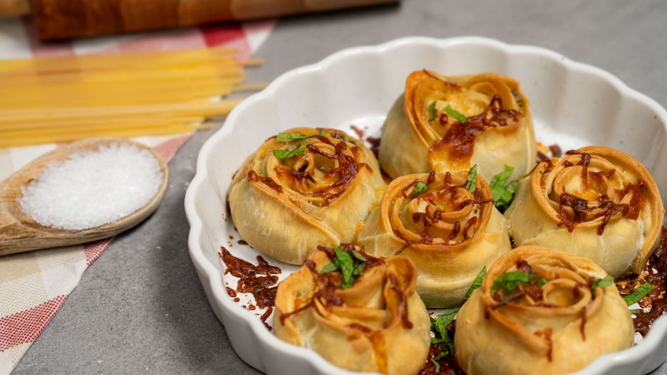 W makaronowych różyczkach skrywa się pyszny farsz. To jadalne dzieło sztuki zachwyca smakiem