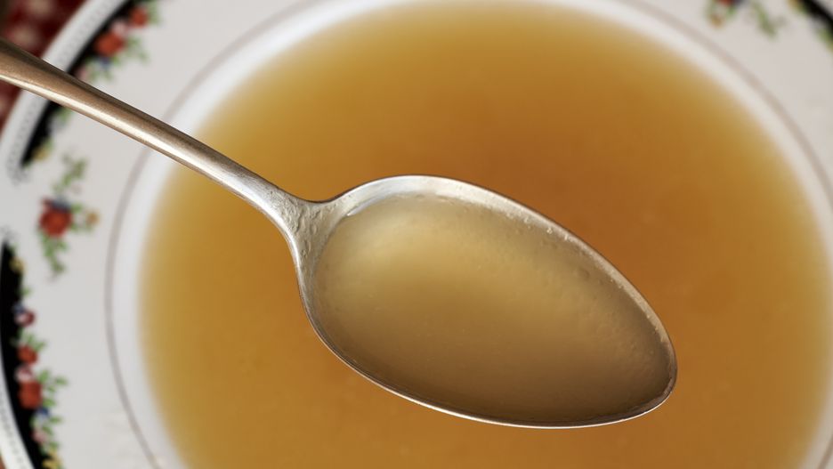 Kolagen, który wiele osób przyjmuje w postaci kapsułek, jest obecny również w różnego rodzaju mięsach, przy czym te ze skórą i kośćmi zawierają go o więcej niż filetowane fragmenty. Białko, które stanowi również 75 proc. składu naszej skóry, rozpuszcza się w wodzie wyniku długiego gotowania wywaru. Niektórzy wstawiają rosół kolagenowy nawet na 36 godzin, ale naukowcy sprawdzili, że nie ma takiej potrzeby, ponieważ po 6 godzinach gotowania ilość kolagenu wzrasta już tylko w niewielkim stopniu.