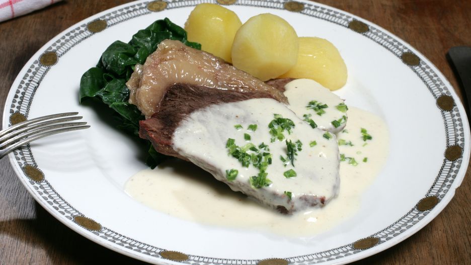 W czasach PRL-u wołowina była towarem luksusowym – można było pomarzyć o polędwicy czy rostbefie. O wiele bardziej dostępna była łata, którą również ceniono za wyrafinowany smak i wartości odżywcze. Dzisiaj nieczęsto gości na naszych stołach, co jest dużą stratą. Mięso w sosie chrzanowym wychodzi wyjątkowo delikatne, kruche i wyraziste w smaku.