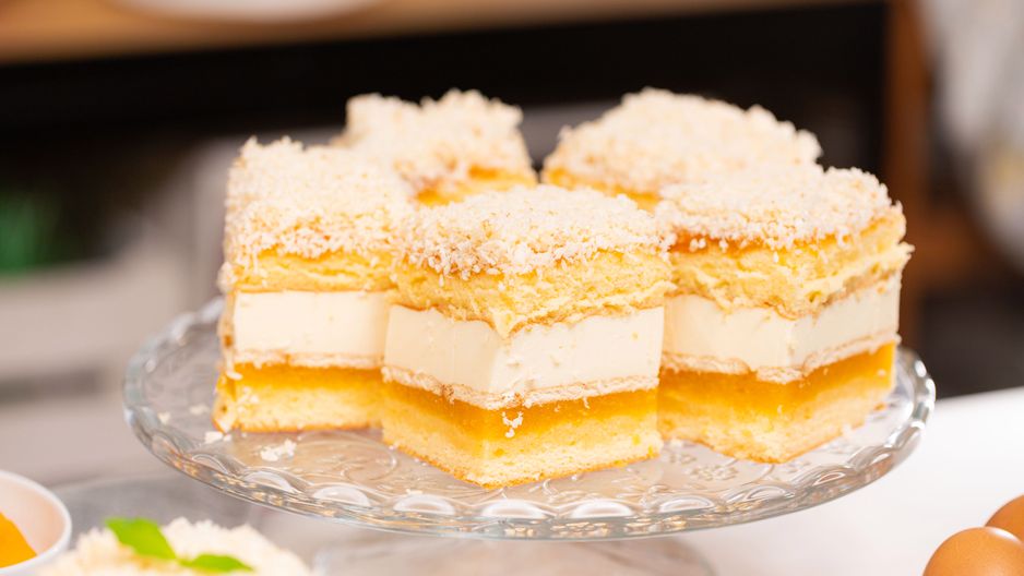 Ciasto Wenus to połączenie puszystego biszkoptu, orzeźwiającego musu brzoskwiniowego oraz kremowej pianki serowej. Ale to nie koniec. Idealnym zwieńczeniem całości jest chrupiąca posypka kokosowa. Ciasto nie dość, że świetnie smakuje, to jeszcze pięknie się prezentuje. Lista składników czeka poniżej. Dokładną instrukcję znajdziesz w naszym wideo.
