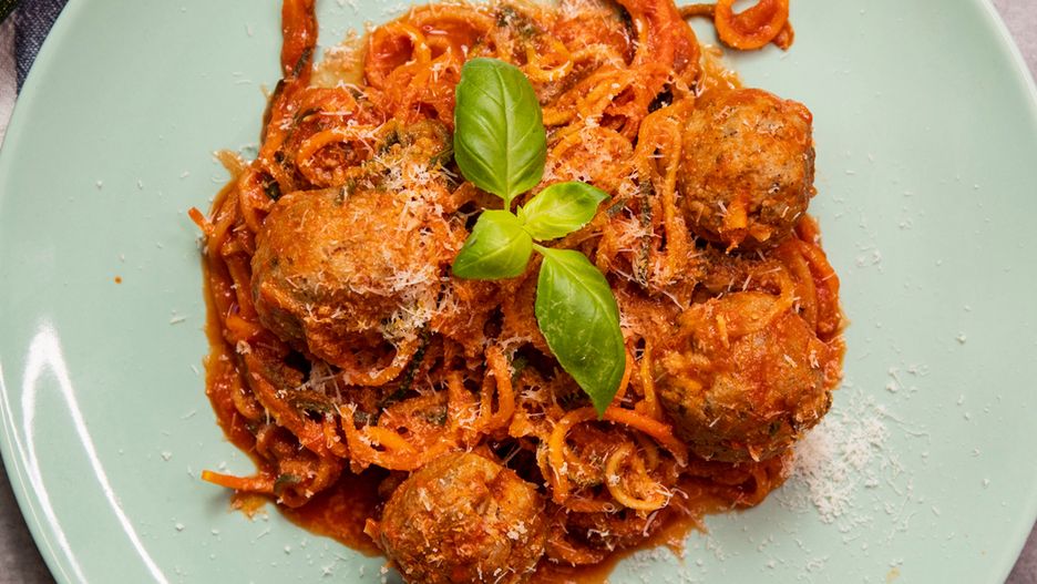 Warzywne spaghetti z sosem pomidorowym totalnie zawróciło nam w głowach. Jest mega smaczne i dużo lżejsze od tradycyjnej wersji. Czego chcieć więcej?
