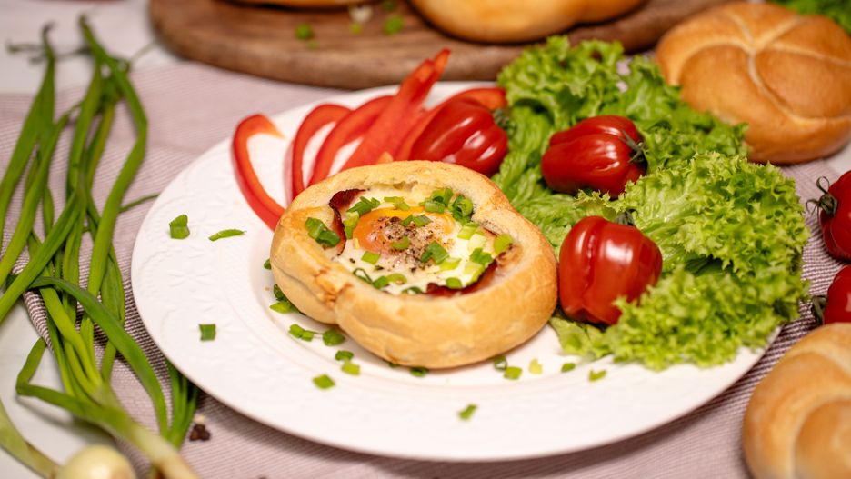 Dawniej mówiło się, że śniadanie to najważniejszy posiłek dnia. W rzeczywistości ważne jest wszystko to, co trafia na nasz talerz przez całą dobę. Nie oznacza to jednak, że śniadania można traktować po macoszemu. Pyszne jajka zapiekane w bułce z dodatkiem sera oraz szynki pozwolą na smaczny start i dobry humor już od samego rana.
