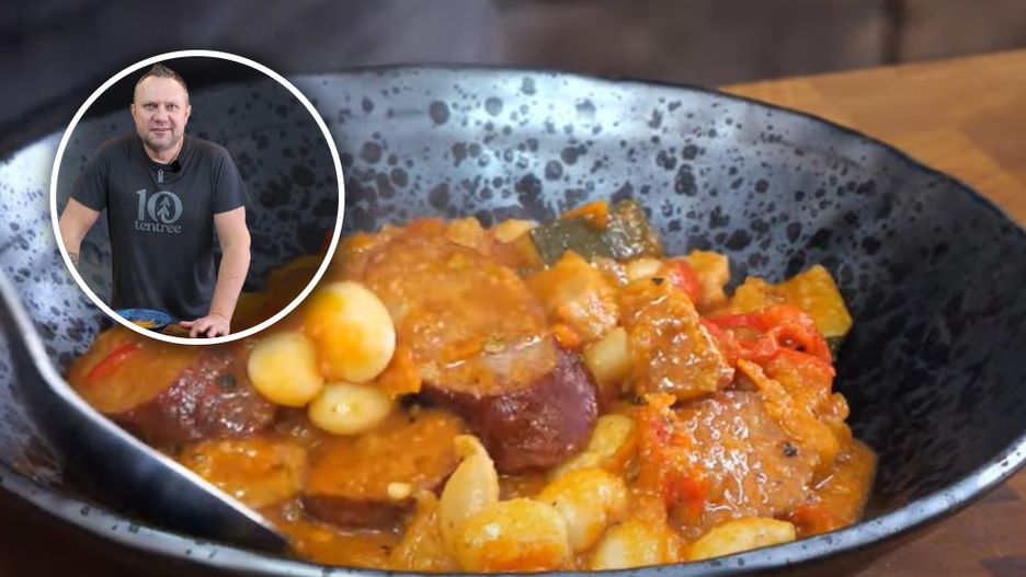 Fasolka? Często pierwsze skojarzenie to ta po bretońsku. Rzeczywiście w tym wydaniu znamy ją doskonale. Tomasz Strzelczyk proponuje trochę inne podejście. Co prawda używa do swojego dania kiełbasy i boczku, które znajdziemy w fasolce po bretońsku, ale pozostałe składniki mogą zaskoczyć. Przypominają znane węgierskie danie.