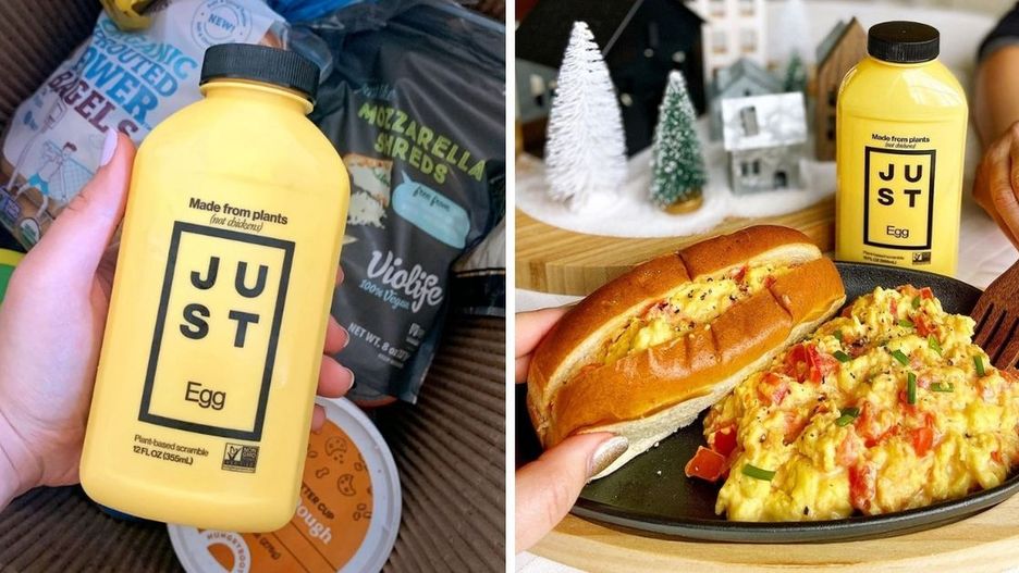 Firma Eat Just specjalizuje się w produkcji roślinnych zamienników znanych produktów. Jednym z najpopularniejszych produktów jest "Just Egg" czyli roślinny zamiennik jajka.