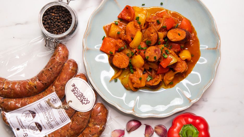 Dziś podzielimy się z Tobą tradycyjnym przepisem na węgierskie leczo. Bazą pysznego dania stała się kiełbasa pieczona z pierzem, która podkręciła na maksa smak całej potrawy.