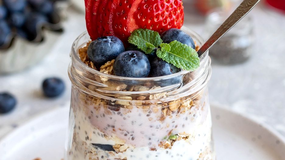 To nie tylko wygodne, ale również zdrowe śniadanie. Jest bogate w białko i błonnik, co sprawia, że posiłek jest bardziej sycący i daje uczucie pełności na dłużej. Poza oczywistymi korzyściami dla układu trawiennego owsianka wspiera również pracę mózgu dzięki wysokiej zawartości kwasów tłuszczowych omega-3 obecnych w nasionach chia. Dodatkowo obecność witamin z grupy B w płatkach owsianych wspomaga metabolizm i zwiększa poziom energii.
