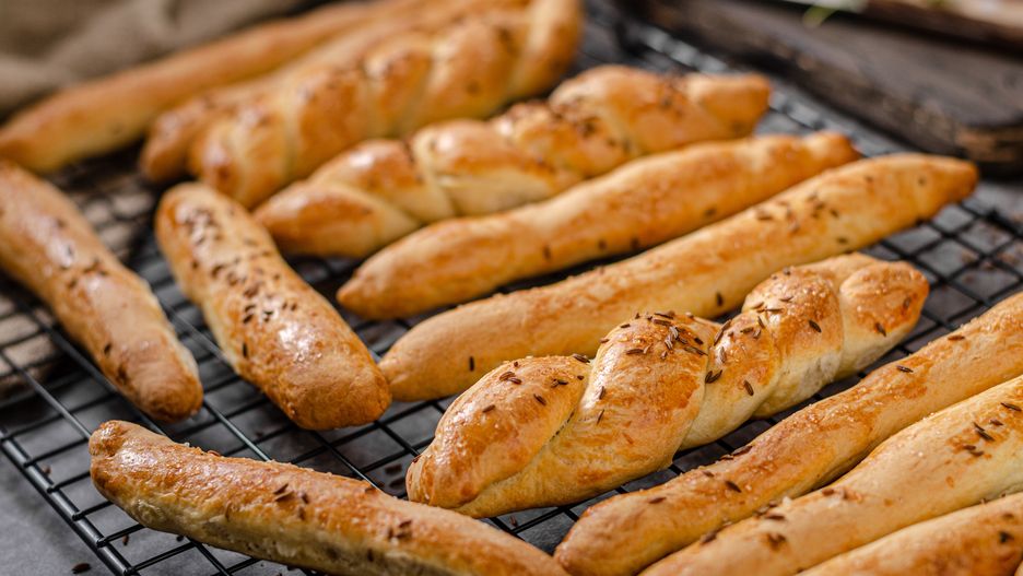 - Podziel ciasto na równe porcje i uformuj cienkie paluchy. Ułóż je na blasze wyłożonej papierem do pieczenia.