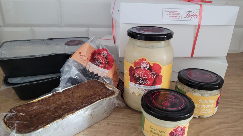 To, co rzuca się w oczy tuż po otrzymaniu zamówienia, to dbałość o detale. Całość zapakowana była w dwie sygnowane logo restauracji torby - wygodnie można było je odebrać i przewieźć, bez konieczności zabierania własnych skrzynek. Logo widoczne jest też na poszczególnych produktach. Słoiki z domowym majonezem "według przepisu babci" (27 zł) czy tradycyjną sałatką jarzynową (44 zł) wyglądają, jakby przed chwilą zjechały z taśmy w luksusowej spiżarni. Pasztet z dziczyzny i grzybów (98 zł) został upieczony w klasycznej aluminiowej foremce, ale jego zapach po otwarciu folii natychmiast wypełnia całą kuchnię aromatem jałowca i borowików.