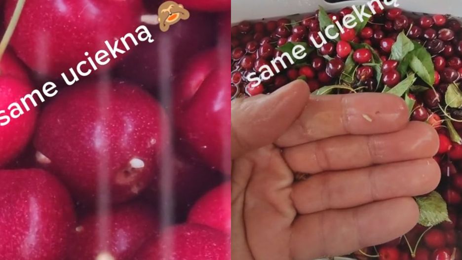 Również czereśnie potrafią stać się domem dla różnych niespecjalnie apetycznych stworzeń. Najczęściej pojawiają się tam larwy nasionnicy trześniówki. Chociaż nie ma żadnych dowodów na to, że mogłyby one zaszkodzić człowiekowi (na pewno nie bardziej niż obecne na wielu owocach pestycydy), to nie dla wszystkich są tam mile widziane. Tiktoker @kozijamamoto pokazał, jak się ich pozbyć.