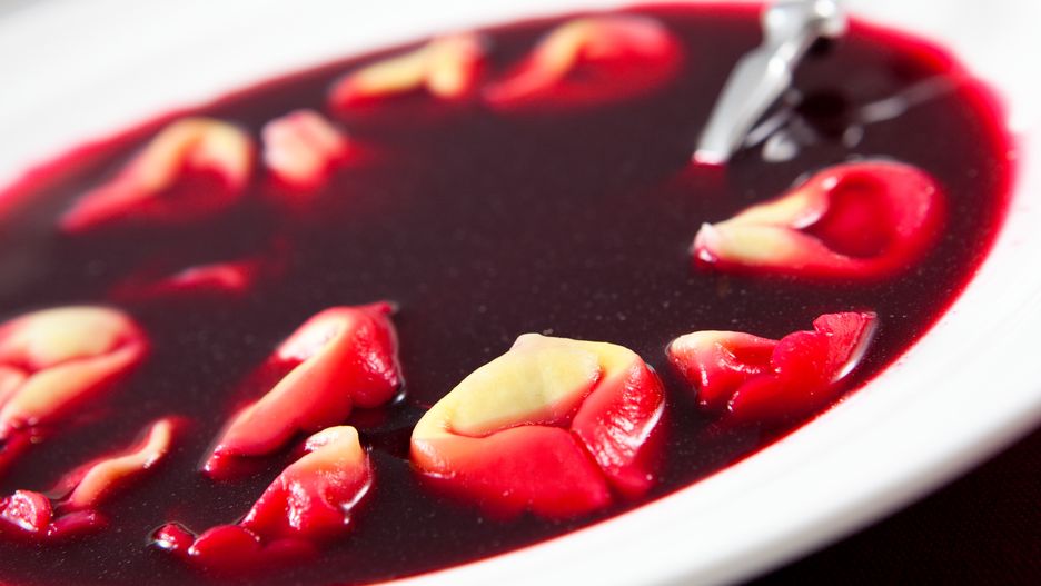 - Barszcz podawaj z ulubionymi dodatkami, na przykład z uszkami z farszem grzybowym lub mięsnym.