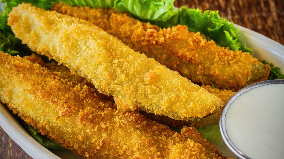 Dla nas smażone ogórki mogą brzmieć niemal jak herezja, ale w południowej części Stanów Zjednoczonych to znana od pokoleń przystawka. Pojawiła się w latach 60. i do dziś serwuje się ją w niektórych restauracjach, sieciówkach czy festiwalach kulinarnych. Często podaje się je w towarzystwie sosu ranczerskiego. To jeden z najpopularniejszych dipów na bazie majonezu z dodatkiem koperku, pietruszki, czosnku, soli, pieprzu oraz innych ziół i innych składników. Możesz śmiało zamienić go na sos czosnkowy lub po prostu ketchup czy majonez.