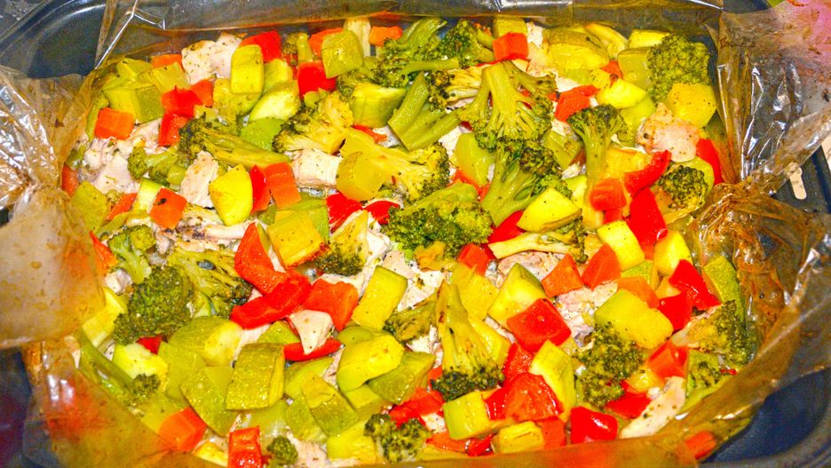 Przepis na pieczonego w rękawie kurczaka z warzywami