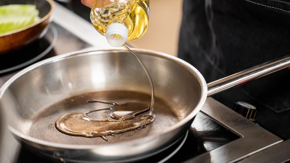- Używaj odpowiedniej patelni – patelnia z grubym dnem nagrzewa się równomiernie, a olej nie osiąga punktowo ekstremalnie wysokiej temperatury.