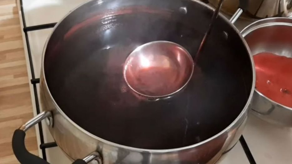 - Gorący sok przelewam przez gazę i przelewam do czystych, wyparzonych słoików.
