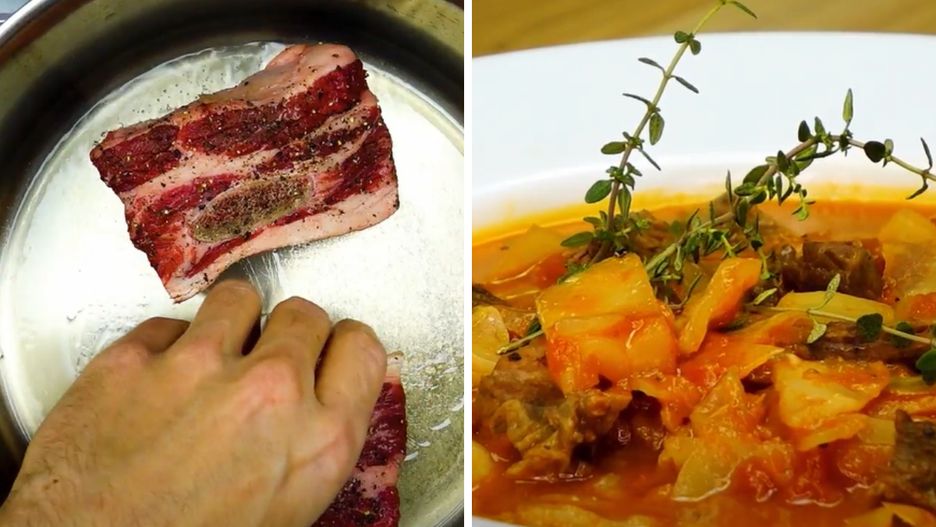 Zacznijmy może od tego, czym tak w ogóle jest szponder wołowy. Otóż jest to przepyszne, kruche i delikatne mięso, które wydobywa się z okolic mięśni międzyżebrowych. Pamiętam, że w kuchni mojej babci był on bardzo często wykorzystywany. I właśnie dzięki jej sprawdzonemu przepisowi na domową kapuściankę ze szpondrem i pomidorami przypomniałam sobie o tym wyjątkowym mięsie.