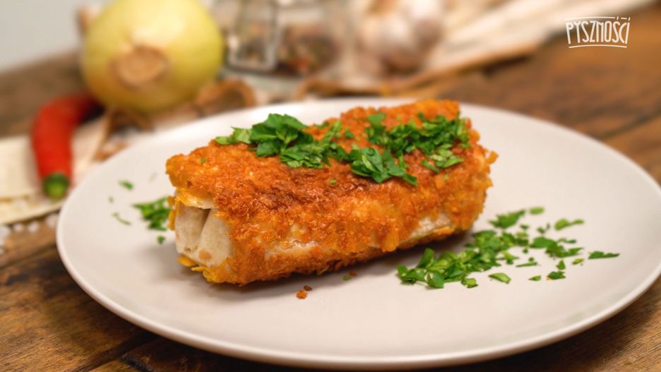 Krokiety z tortilli to przepis na pyszny obiad bez większego wysiłku. Nie musisz stać nad patelnią i smażyć sterty naleśników. Pod chrupiącą panierką z płatków kukurydzianych skrywa się prosty farsz z kurczaka, papryki, cebuli oraz sera. Zachwyt domowników murowany!