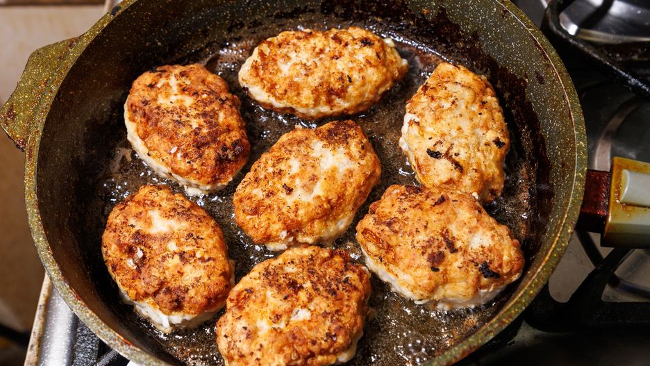 - Smaż kotlety na średnim ogniu z obu stron, aż staną się złocistobrązowe i w pełni upieczone w środku. Zajmie to około 4-5 minut na każdą stronę.