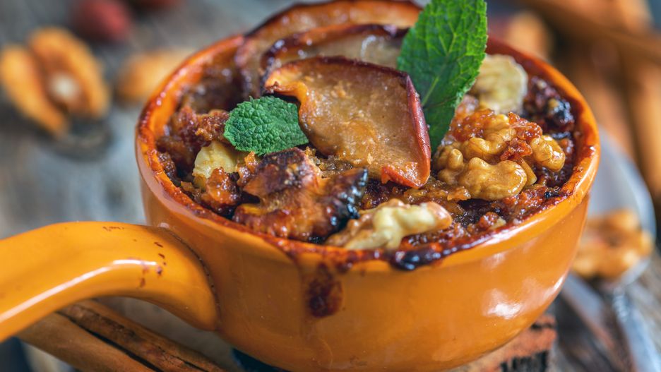 - Wstaw naczynie do nagrzanego piekarnika i piecz przez 20-25 minut, aż płatki wchłoną płyn i zmiękną, a wierzch lekko się zarumieni.