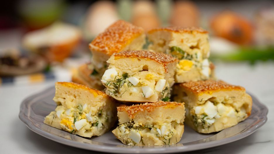 Wytrawne ciasto z farszem na bazie gotowanych jajek i zielonym akcentem z koperku i szczypiorku to przepis na zaskakujący obiad bez mięsa.