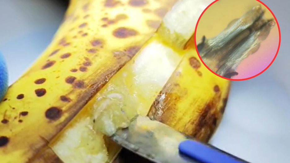 Na koniec tiktoker pokazał, że i gołe oko jest w stanie dostrzec nieproszonych gości w bananie. Niewielki, biały robaczek przypominający białe larwy pomieszkujące latem śmietniki wił się, aż miło.