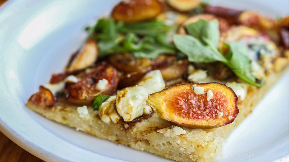 - Pokrój figi w plasterki i rozłóż na podpieczonym spodzie, polej je niewielką ilością miodu i posyp pokruszonym serem kozim.