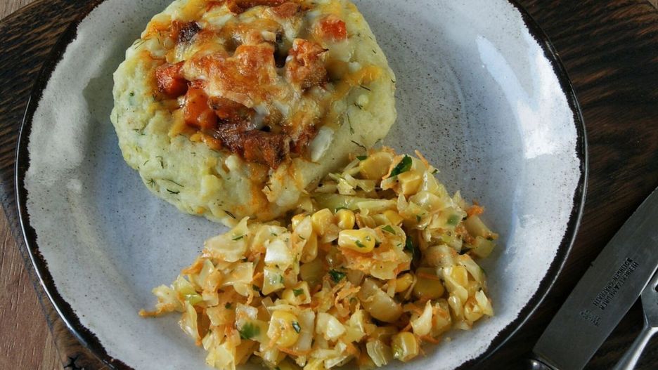 "Po niedzielnym obiedzie zostały mi ziemniaki, fasola, mięso, warzywa, ser. Dodatkowo w lodówce znalazłam resztę koncentratu pomidorowego, ser, niecałą cebulę. Z tych produktów zrobiłam zapiekane kluski z purée z ziemniaków i fasoli nadziewane mięsem z marchewką" - pisze Katarzyna, autorka bloga "Kwelka gotuje".