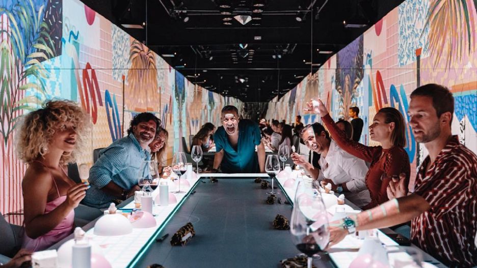 Kiedy wchodzisz do Sublimotion, czujesz się, jakbyś przeniósł się w czasie do innego świata. W centrum znajduje się długi stół, przy którym może zasiąść tylko 12 gości. Wysokie krzesła i ekrany sięgające od podłogi do sufitu otaczają stół, tworząc przestrzeń projekcyjną 360 stopni. To tu rozgrywa się spektakl, którego nie da się zapomnieć.