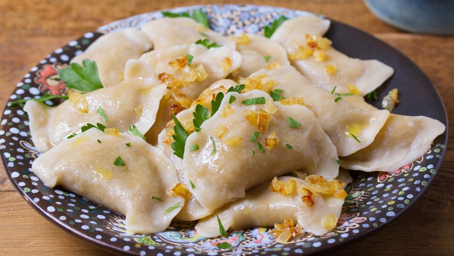 Gotowe pierogi podaj z okrasą z cebulki lub innymi, wybranymi przez siebie dodatkami. Smacznego!