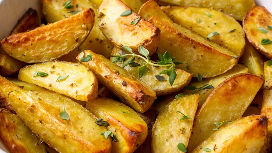 - Po około 30 minutach wyjmij ziemniaki z piekarnika, wymieszaj i posyp suszonym oregano.