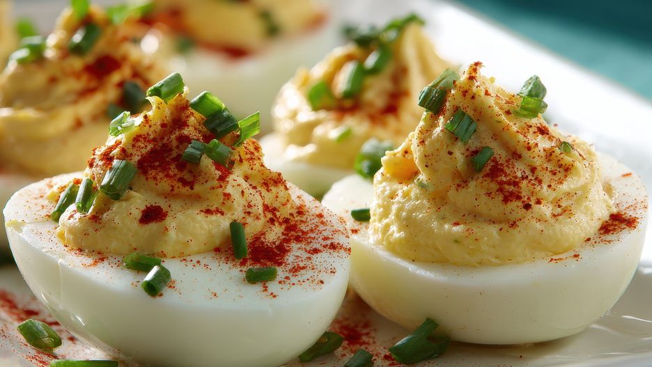 - Ułóż na półmisku, udekoruj pieprzem cayenne lub ostrą papryką. Gotowe!