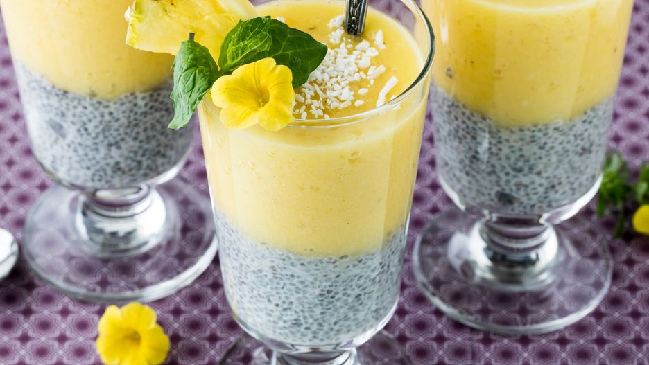 Pudding chia to prosty deser przygotowany na bazie nasion chia, które w kontakcie z płynem pęcznieją i tworzą gęstą, budyniową konsystencję. Dzięki nim pudding jest zdrowy, bogaty w błonnik, kwasy omega-3 i minerały, a przy tym stanowi zdrowszą alternatywę dla zwykłych, przesłodzonych deserów. To także świetna baza do eksperymentowania z różnymi owocami, które dodajemy na wierzch. Mango, maliny, borówki czy ananas — dzisiaj przyjrzymy się temu ostatniemu.