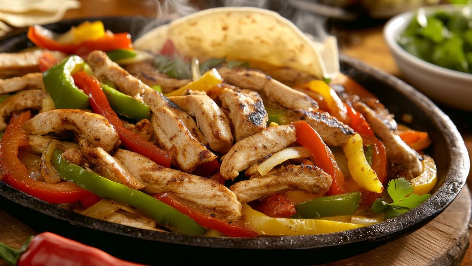 - Filet z kurczaka opłucz, osusz, pokrój w paseczki. Przełóż go do naczynia żaroodpornego, oprósz solą, pieprzem i pozostałymi przyprawami. Polej oliwą.