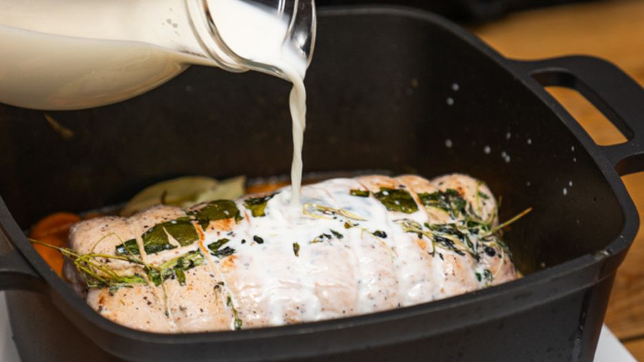 Zamiast panierować i smażyć schab na rozgrzanej patelni, zalej go kremowym płynem i duś pod przykryciem. Gwarantuję ci, że nie pożałujesz, bo schab po takim procesie będzie dosłownie rozpływał się w ustach.