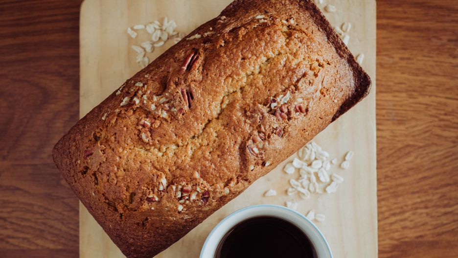- Natłuść keksówkę masłem i przelej do niej ciasto. Wierzch posyp płatkami owsianymi, aby nadać wypiekowi rustykalny wygląd.
