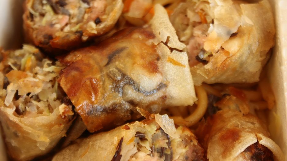 - Wymieszaj mięso, warzywa i makaron, dopraw sosem sojowym. To będzie twój farsz do sajgonek.