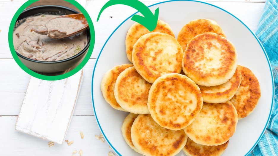 Zamiast zjadać na śniadanie, zrób z nich placki. Polane sosem grzybowym będą rajem dla podniebienia