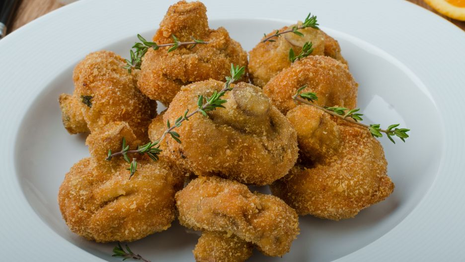 Chrupiące pieczarki w cieście serowym. Przekąska idealna
