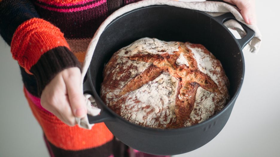 Wykorzystanie ciężkiego, żeliwnego garnka z pokrywką imituje profesjonalny parowy piec piekarniczy i tym samym zapewnia doskonałe warunki do pieczenia chleba. Dzięki tych właściwościom chleb z garnka podbił serca początkujących piekarzy na całym świecie.