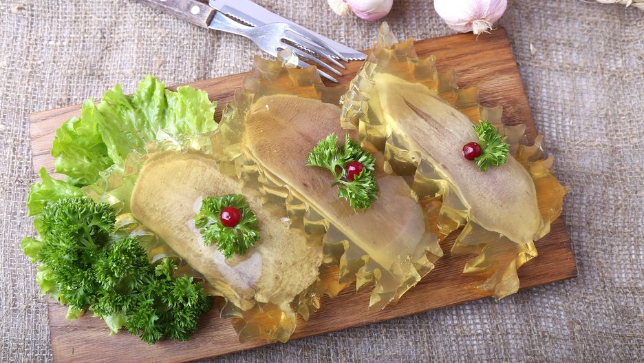 - Zalewanie galaretką: Całość zalej rozpuszczoną w bulionie żelatyną. Odstaw do lodówki, pozwalając galaretce całkowicie zastygnąć.