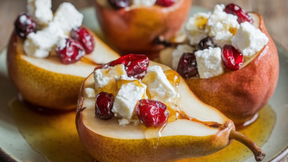 Gdy nie mam ochoty na skomplikowane ciasta, chętnie przygotowuję właśnie te gruszki. Są zapiekane w piekarniku, oblane miodem i posypane suszoną żurawiną oraz opcjonalnie serem feta.
